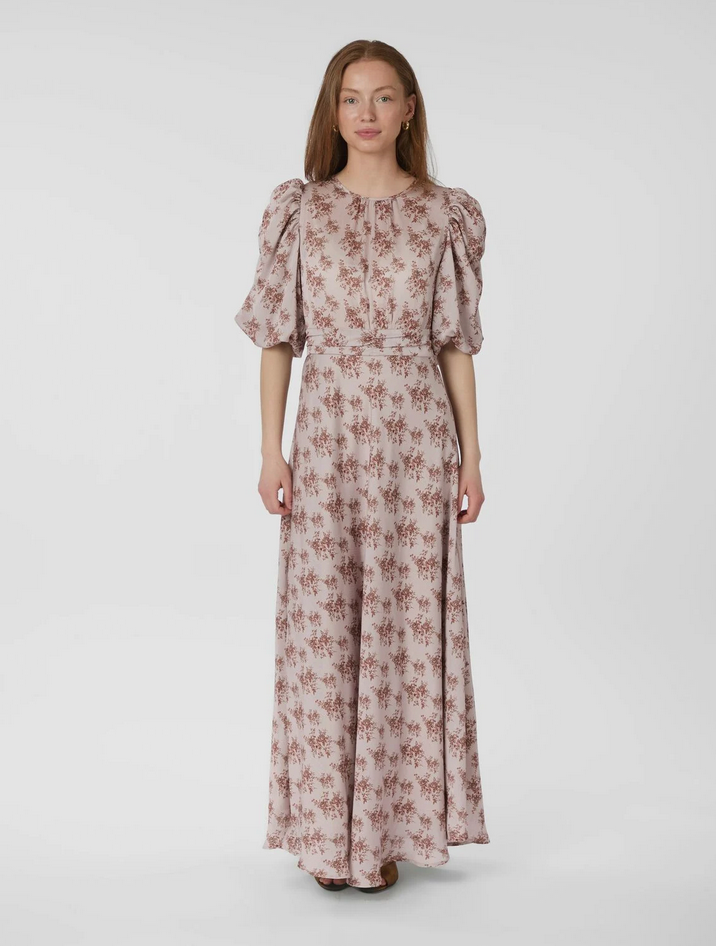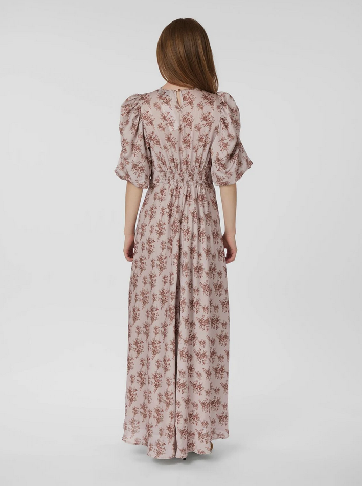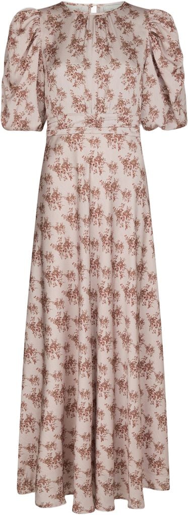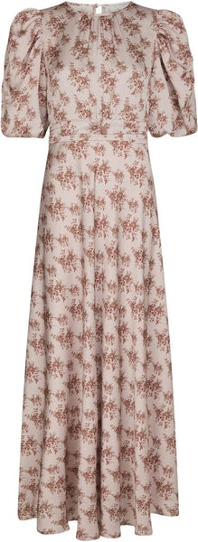 Kikka kjolen fra Neo Noir er en smuk lang kjole med det fineste blomster mønster. Kjolen har en rund halsudskæring, korte pufærmer og lukkes med en nøglehulslukning i nakken. Den har en fin detalje under brystet og smock i taljen bagpå.