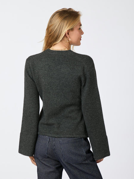 Pixie Knit cardiganen fra Neo Noir er en strikket cardigan i en klassisk mørkegrå farve. Strikken har v-hals og knappes foran med matchende knapper. Den har lommer foran og brede ærmer med ribkant.